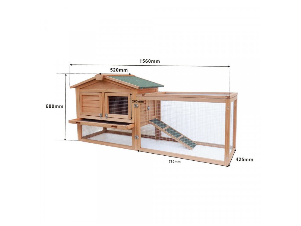 Dřevěná králíkárna ADANA, 1560x520x680 mm