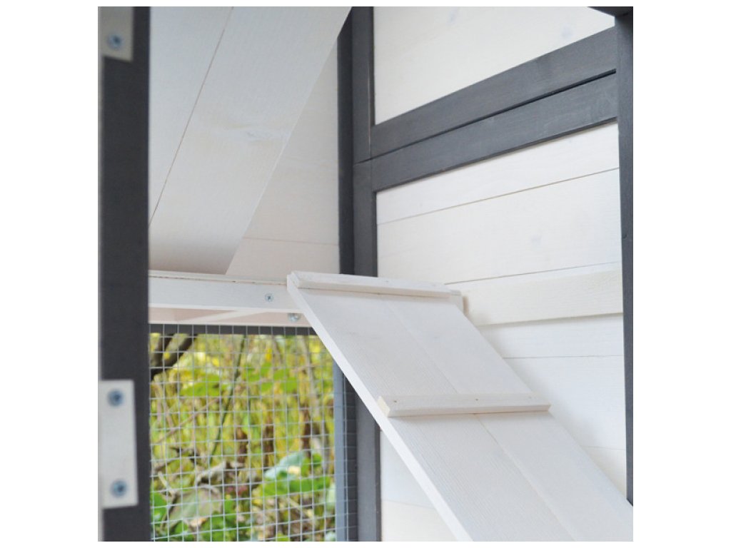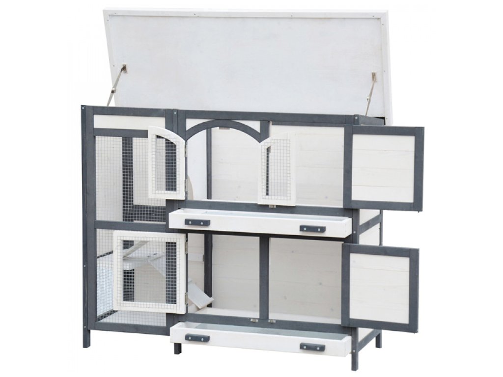 Zbytek králíkárny je vylepšen robustním pletivem. To propustí hodně světla a čerstvého vzduchu. Zvířata v králíkárně se mohou přesouvat mezi patry dvěmi schodišti. Dřevěné nohy zajišťují dobrou cirkulaci vzduchu a zabraňují přímému kontaktu se studenou a mokrou podlahou. V novém modelu jsou zabudovány dvě zásuvky na hnůj, díky nimž je čištění hračkou.