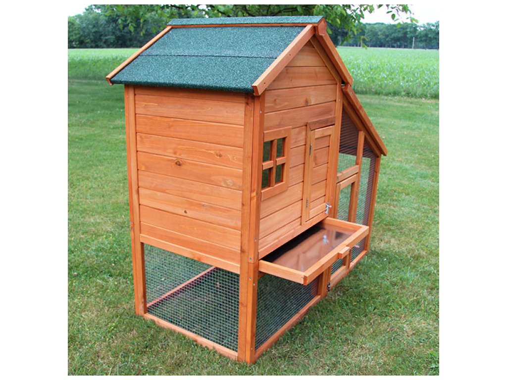 Králíkárna vyrobená ze dřeva má hmotnost cca 25 kg. Pro ochranu proti slunečnímu záření je střecha pokryta asfaltovými pasy. Králíkárna není zateplená. Doporučujeme domek umístit pod přístřešek, aby byl chráněn před deštěm, sněhem a extrémním slunečním záření. Domek je povrchově ošetřen základním ochranným nátěrem. Pro delší životnost je třeba, jako u každého dřeva, ochranný nátěr obnovovat.
