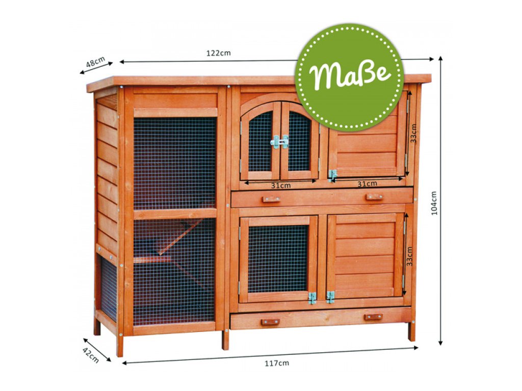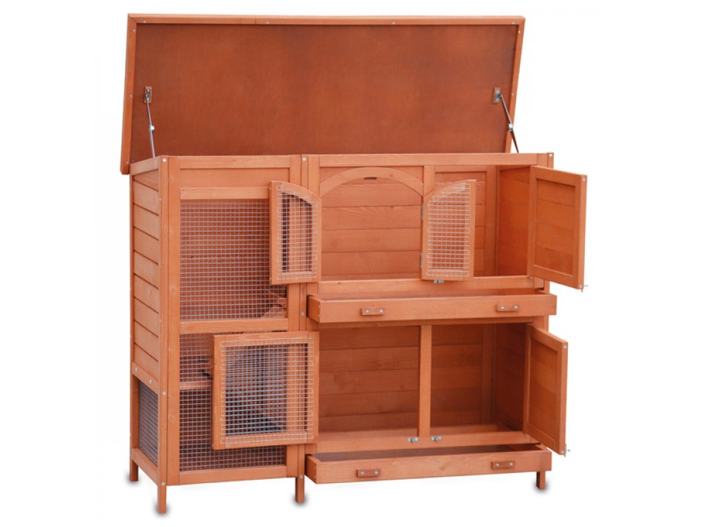 Zbytek králíkárny je vylepšen robustním pletivem. To propustí hodně světla a čerstvého vzduchu. Zvířata v králíkárně se mohou přesouvat mezi patry dvěmi schodišti. Dřevěné nohy zajišťují dobrou cirkulaci vzduchu a zabraňují přímému kontaktu se studenou a mokrou podlahou. V novém modelu jsou zabudovány dvě zásuvky na hnůj, díky nimž je čištění hračkou.