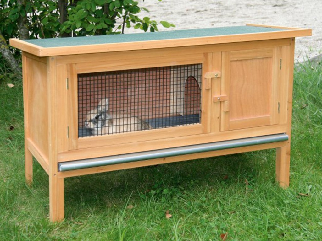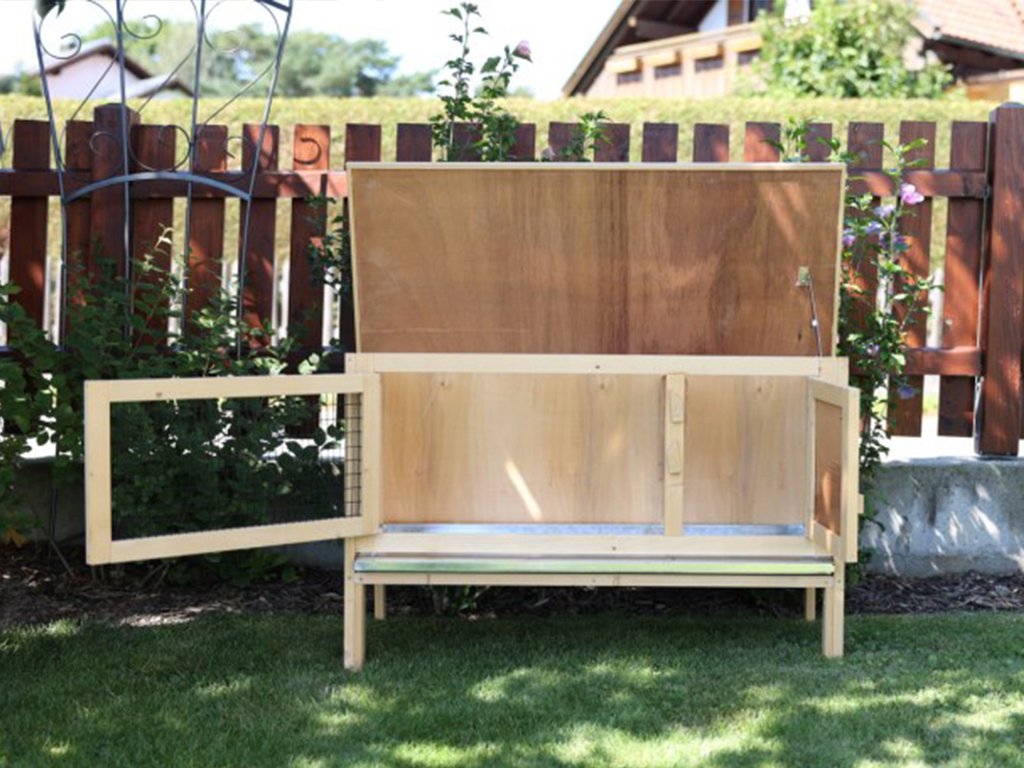 Čištění králíkárny zvládnete během pár minut. Práci velmi usnadní vyjímatelný pozinkovaný trusník, který stačí z králíkárny vysunout, vyčistit a vrátit zpět. Při údržbě králíkárny určitě oceníte také sklopnou střechu.