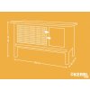 Králikárna je vybavena dvojími dveřmi a sklopnou střechou. Králík, morče nebo jiní hlodavci budou mít v králíkárně dostatek prostoru a pohodlí. Váš mazlíček si může odpočinout v menší části králíkárny, která mu nabídne příjemné soukromí a stín nebo ve větší osvětlené části, která je vybavena pevnou mřížkou o tloušťce drátu 2 mm.