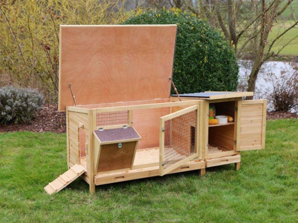 Čištění králíkárny zvládnete během pár minut. Práci velmi usnadní vysouvací plastový trusník, který stačí z králíkárny vyjmout, vyčistit a vrátit zpět. Při údržbě králíkárny určitě oceníte také sklopnou střechu.