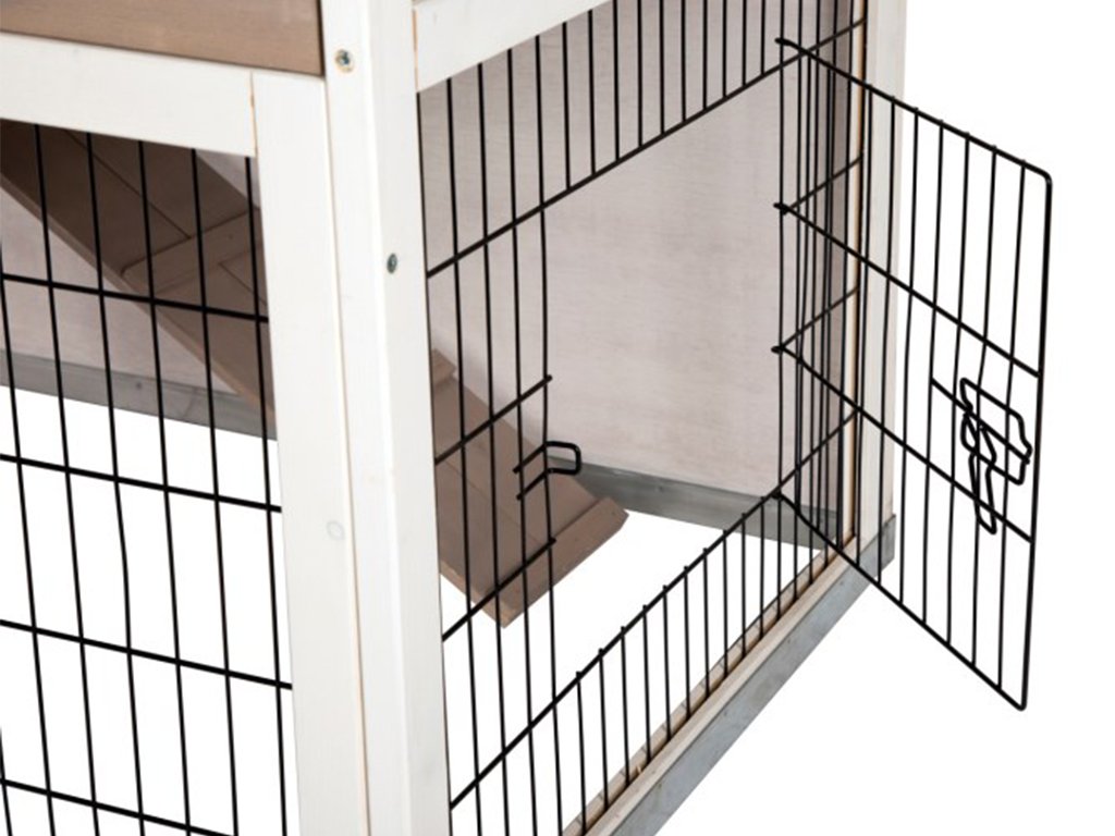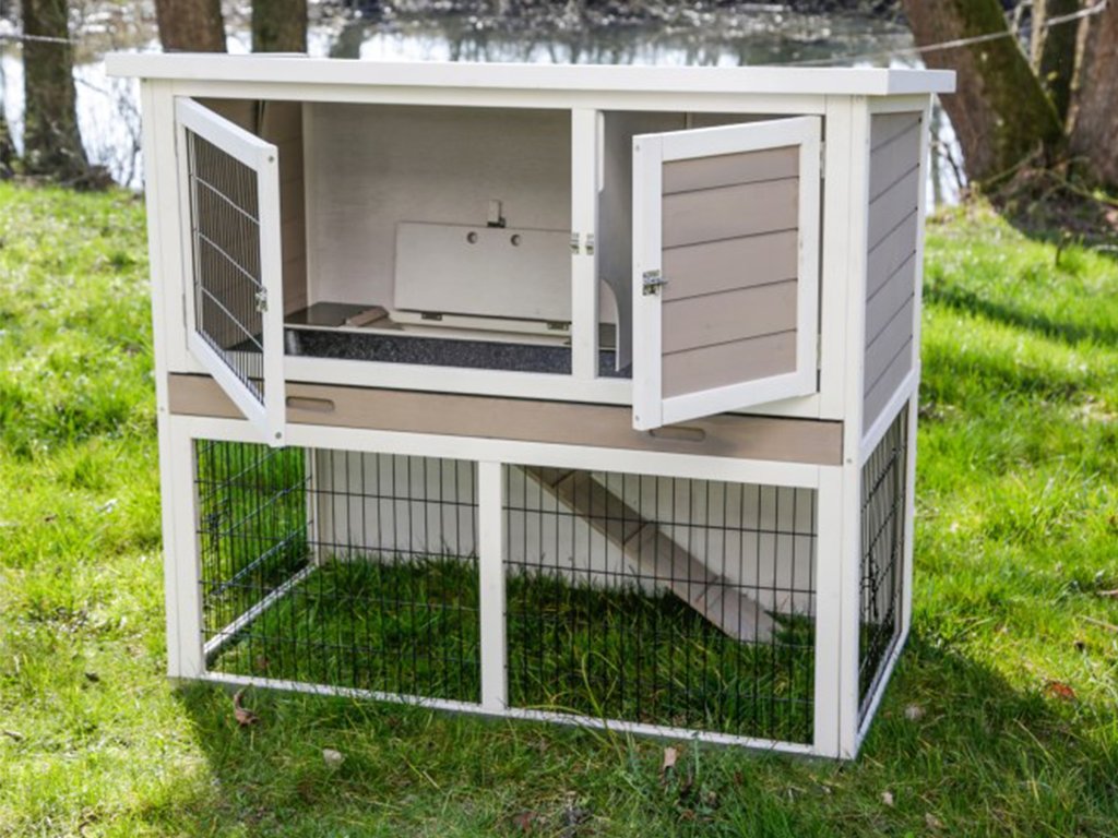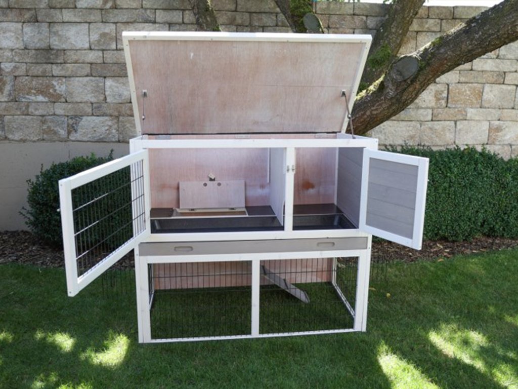 Králíkárna je vybavena čtyřmi samostatnými dvířky a výklopnou střechou výběhu. Disponuje pevnou mříží s povrchem odolným proti okusu a kovovým spodním rámem proti vlhkosti. Králík, morče nebo jiní hlodavci budou mít v králíkárně dostatek prostoru a pohodlí. Váš mazlíček může odpočívat uvnitř králíkárny, která mu nabídne příjemné soukromí a přítmí nebo může trávit čas ve venkovním výběhu na zelené trávě.