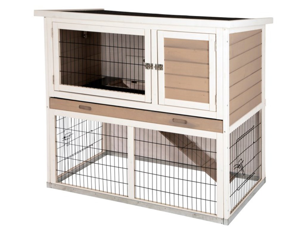 Dřevěná králíkárna pro králíky, morčata, činčily a jiné hlodavce o rozměrech 115×65×100 cm. Jedná se o praktickou králíkárnu s výběhem, která je vybavena vyjímatelným trusníkem pro snadné čistění. Bezproblémový přístup do králíkárny zajišťují přední a boční dvířka. Králíkárnu snadno složíte pomocí přehledného obrázkového návodu.