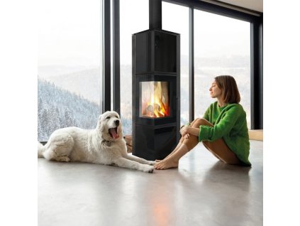 Kamna Haas+Sohn PRATO s výkonem až 8,5 kW v černé barvě s externím přívodem...
