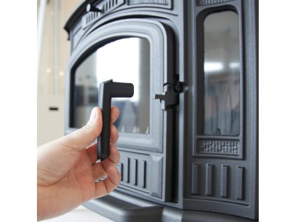 Krbová kamna Piccolo I s výkonem 7 kW v šedé barvě. Vytápěcí schopnost kamen činí...