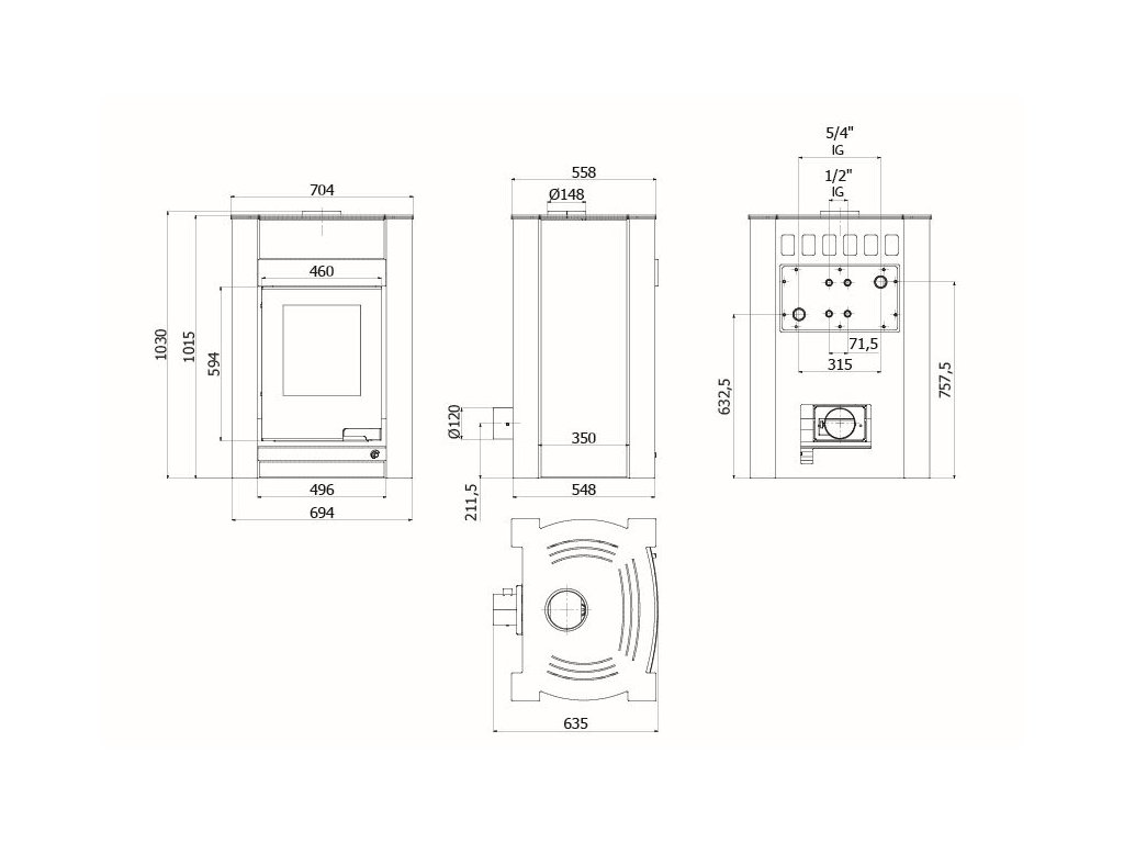 | Palivo: | dřevěné brikety, kusové dřevo |