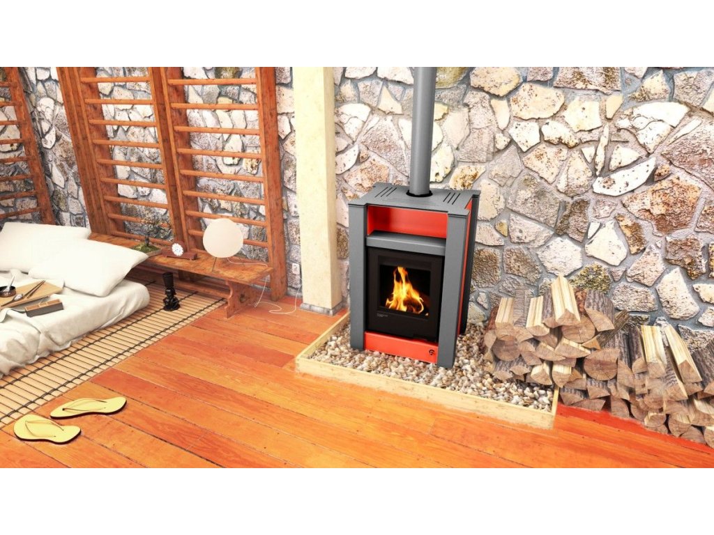 Kamna s výměníkem AQUAFLAM VARIO LEND 11/5kW červená, elektronická regulace