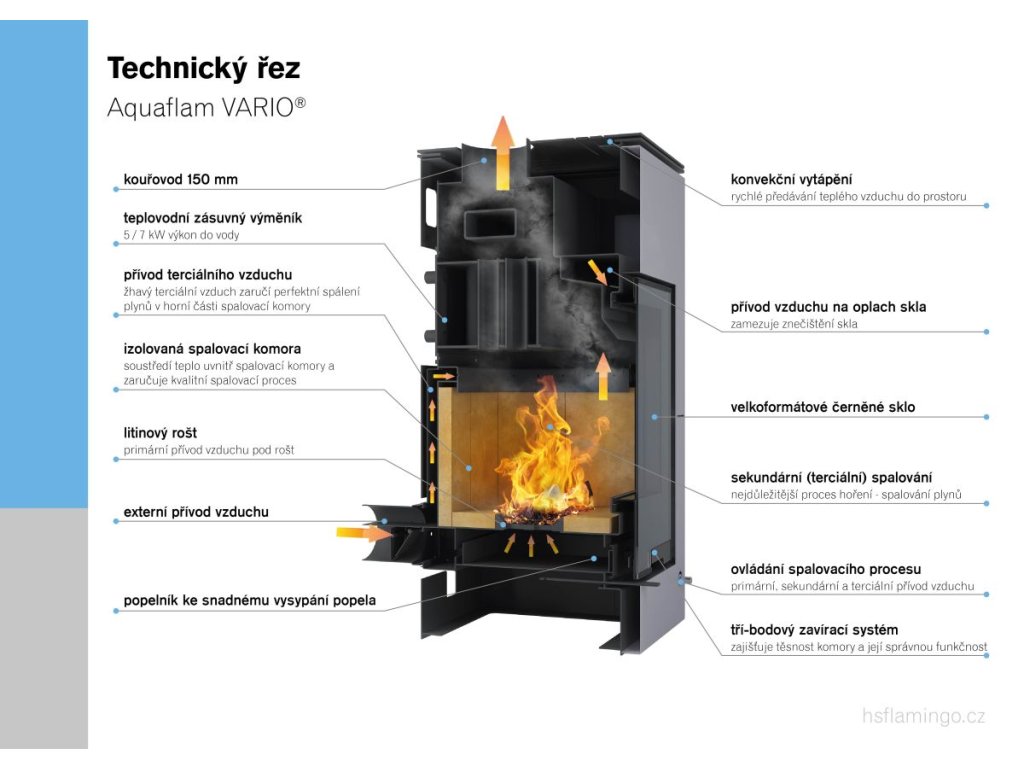 - Inteligentní přísun primárního, sekundárního a terciárního vzduchu do spalovací komory zajišťuje dokonalé spalování