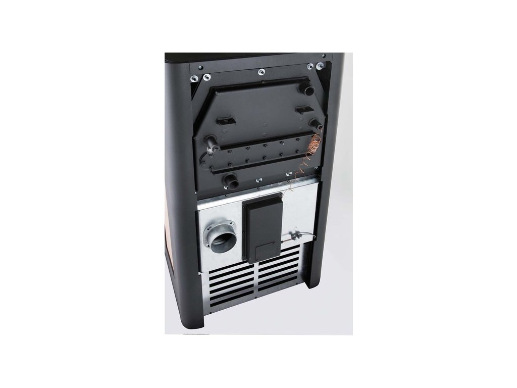Tato kamna nelze provozovat bez připojení k radiátorům nebo podlahovému topení. Teplovodní výměník slouží k ohřevu vody, která následně cirkuluje v topném systému. Pro zajištění správné funkce a bezpečnosti musí být kamna vždy napojena na topnou soustavu.