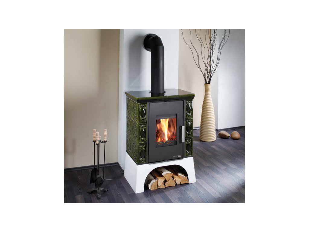Krbová kamna s výměníkem Haas+Sohn EMPOLI AL II v černém provedení s kachlovým obkladem v zelené barvě najdou své uplatnění v novostavbách i stávající zástavbě. Kamna spojují nadčasový design s tradičním kachlovým obložením v klasickém dekoru, který zapadne do každého interiéru.