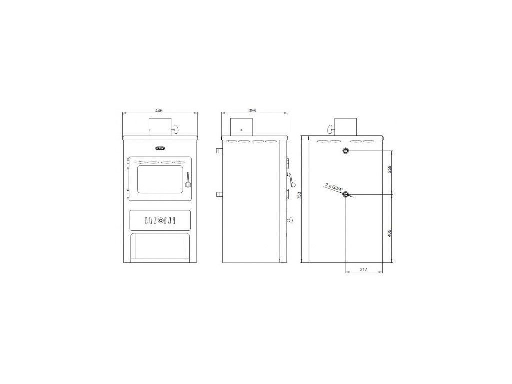 | Palivo: | dřevěné brikety, kusové dřevo |
