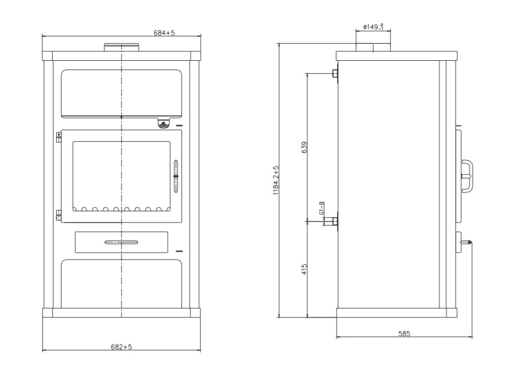 | Palivo: | dřevěné brikety, kusové dřevo |