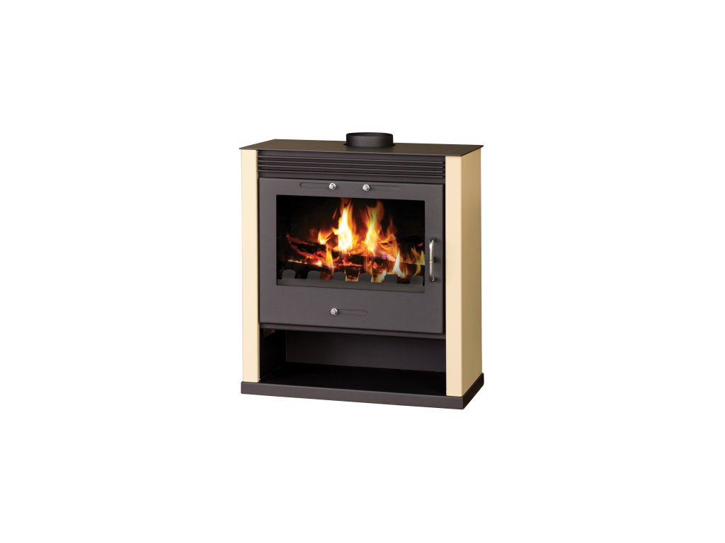 Kamna jsou z kvalitního ocelového plechu. Jsou lakována speciálním lakem, který odolává vysokým teplotám. Kličky a regulátory jsou vyrobeny z mosazi nebo jsou poniklované. Tím se snižuje opotřebování povrchu na minimum. Nebo obě barevné varianty ve verzi bez teplovodního výměníku. Kamna vás uchvátí svým luxusním provedením a většími skleněnými dvířky, odolávající teplotám do 850 C°!, které zaručují nádherný zážitek z pohledu na plápolající oheň. Pod prosklenou částí kamen najdete prostor určený pro skladování dřeva, či dřevěných briket. Spalovací komora kamen je lemována ohnivzdornými tělesy, které hromadí teplo a zvyšují teplotu hoření.