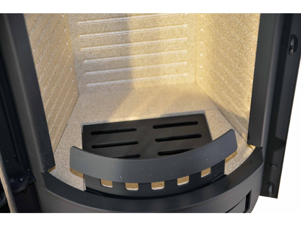 Tělo kamen tvoří dvouplášťový ocelový plech a ohniště je vyloženo vermikulitem, který je snadno vyměnitelný. Uvnitř najdete litinový rošt. Do krbových kamen je možné namontovat akumulační žáruvzdorné betonové kameny, které svou schopností akumulovat teplo udržují povrch kamen teplý mnoho hodin po dohoření paliva. Vhodným palivem pro tyto kamna je jak dřevo (s účinností 80,40 %), tak i dřevěné brikety a hnědouhelné brikety (s účinností 73,70 %). Možnost napojení na externí přívod vzduchu. Palivové dřevo pro topení v kamnech by mělo být suché s vlhkostí do 20%. Ideální je tvrdé palivové dřevo, jako je buk, dub, habr, jasan. Při vyšší vlhkosti dochází ke kondenzaci, znečištění kouřovodu, špinění skla, účinnost kamen se snižuje a spotřeba paliva tím vzrůstá.