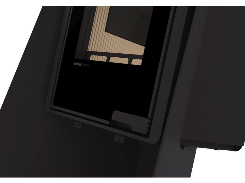 Krbová kamna FLAMINGO DELUXE ® ISLAND s jmenovitým výkonem 9 kW v černé barvě, mají mnoho nadstandardních doplňků. Inovativní prvky směřují především ke zlepšení obsluhy krbových kamen. Tato nadčasová kamna jsou moderní, účinná a s designem, který jinde nenajdete.