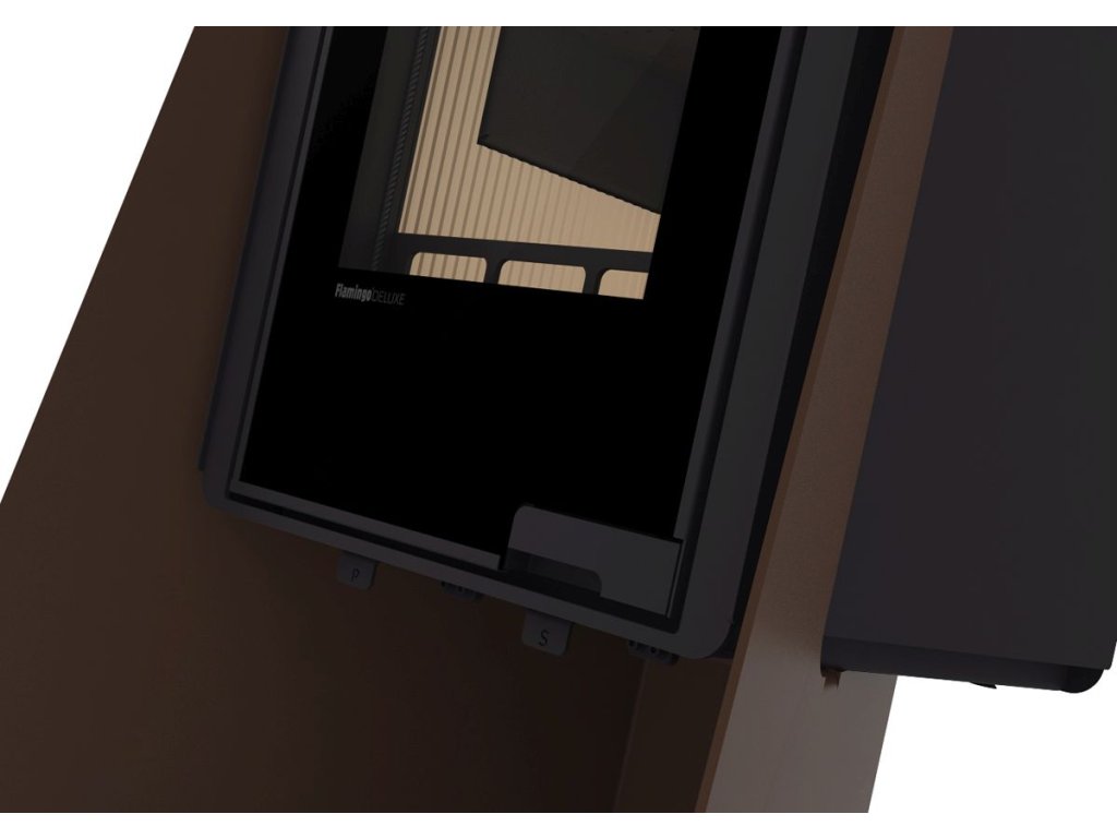 Krbová kamna FLAMINGO DELUXE ® ISLAND s jmenovitým výkonem 9 kW v sametově hnědé barvě, mají mnoho nadstandardních doplňků. Inovativní prvky směřují především ke zlepšení obsluhy krbových kamen. Tato nadčasová kamna jsou moderní, účinná a s designem, který jinde nenajdete.
