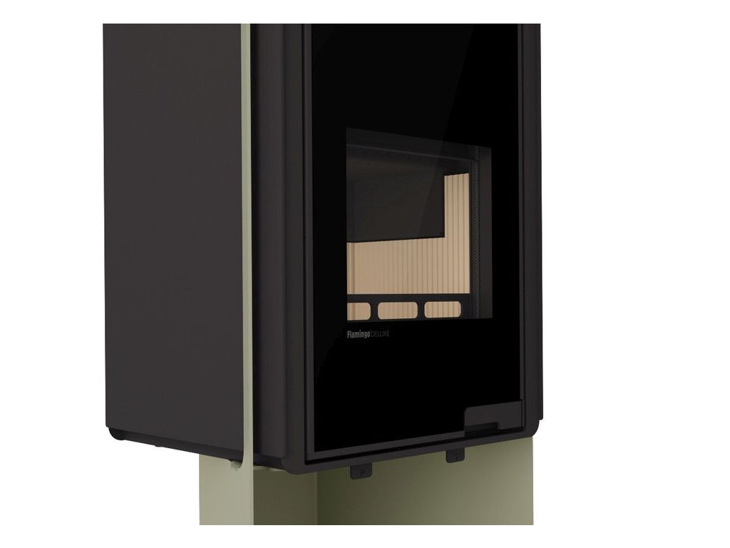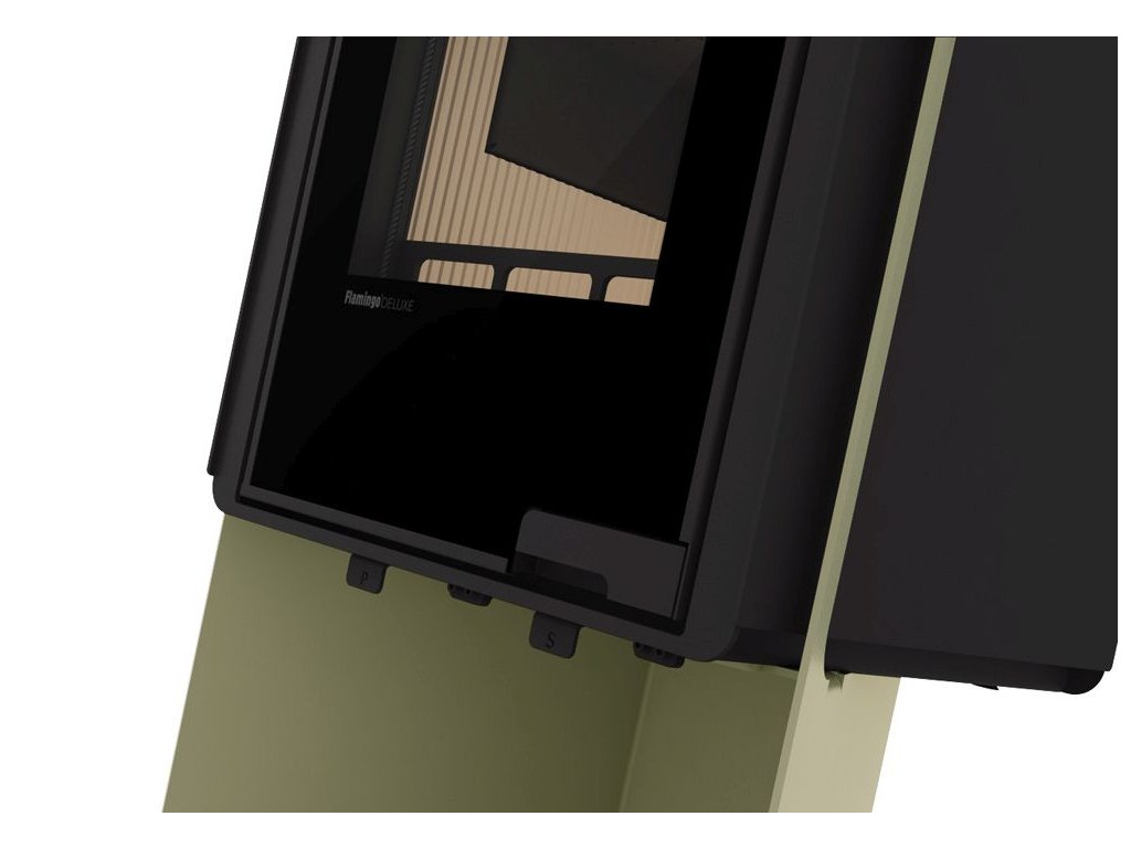 Krbová kamna FLAMINGO DELUXE ® PULAU s jmenovitým výkonem 9 kW v olivové barvě, mají mnoho nadstandardních doplňků. Inovativní prvky směřují především ke zlepšení obsluhy krbových kamen. Tato nadčasová kamna jsou moderní, účinná a s designem, který jinde nenajdete.