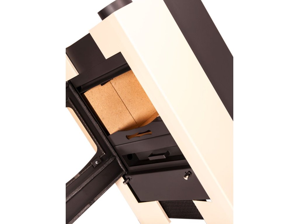 - Šamotová vyzdívka zajišťuje vysoké teploty ve spalovací komoře
