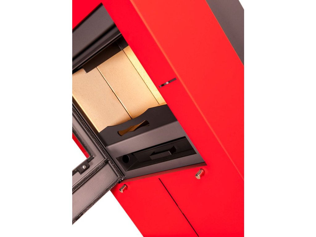 - Šamotová vyzdívka zajišťuje vysoké teploty ve spalovací komoře
