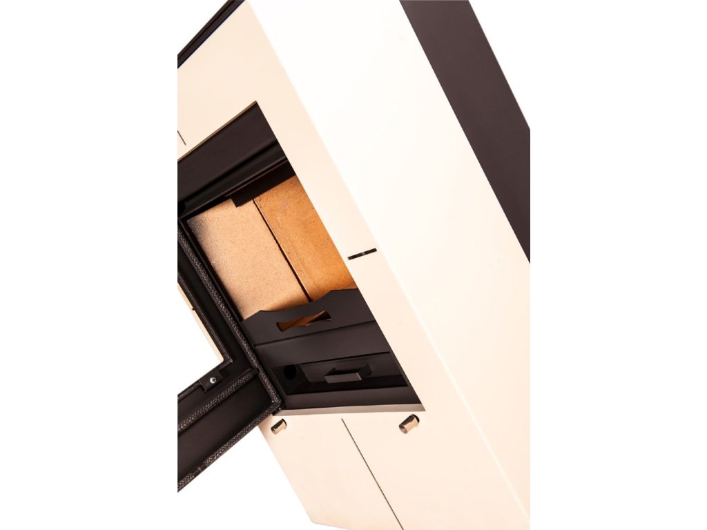 - Šamotová vyzdívka zajišťuje vysoké teploty ve spalovací komoře