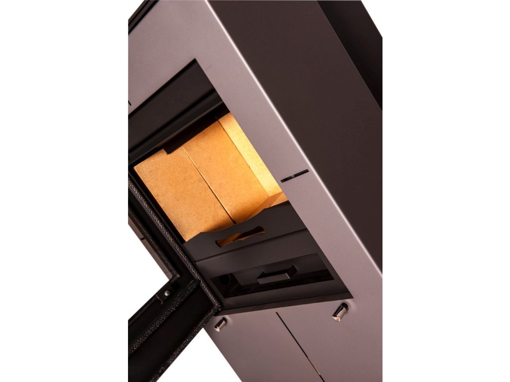 - Šamotová vyzdívka zajišťuje vysoké teploty ve spalovací komoře