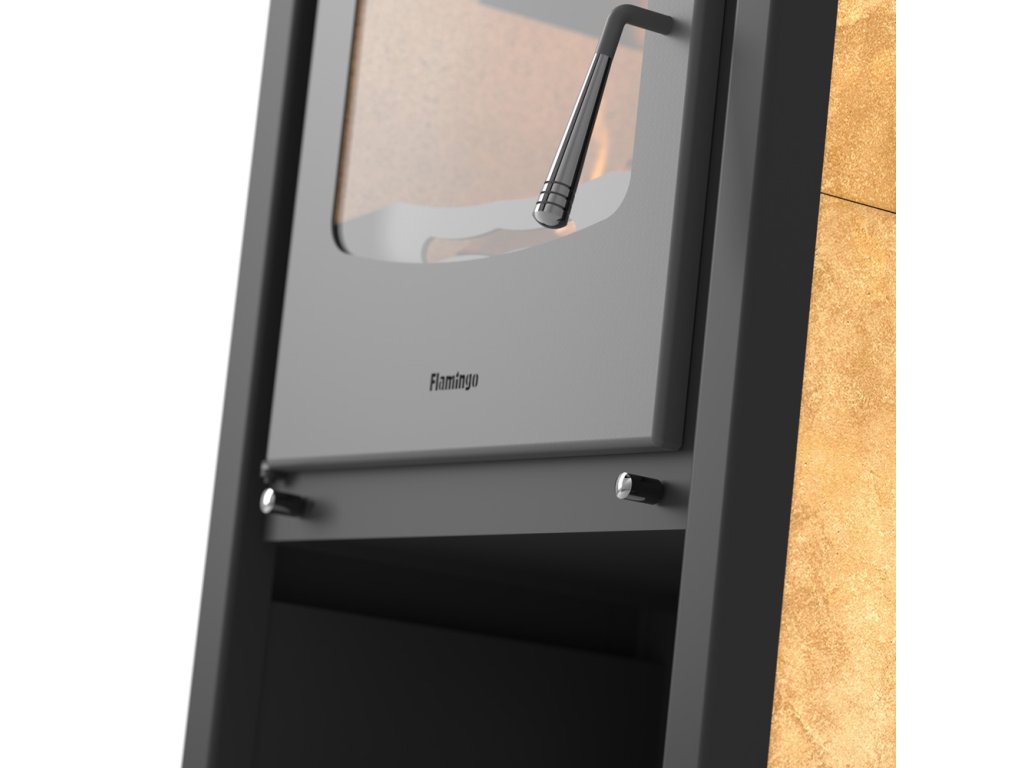 Krbová kamna FLAMINGO ® MELAND s jmenovitým výkonem 9 kW a dlažbou v béžové barvě, mají mnoho nadstandardních doplňků. Inovativní prvky směřují především ke zlepšení obsluhy krbových kamen. Díky své vysoké kvalitě a skvělé ceně jsou velice žádaným artiklem teplovzdušných kamen na českém i evropském trhu. Kamna spojují tradiční obloukový tvar a nadčasový design, který zapadne do každého interiéru a splňují nároky i těch nejnáročnějších zákazníků. Proto najdou své uplatnění v novostavbách i stávající zástavbě.