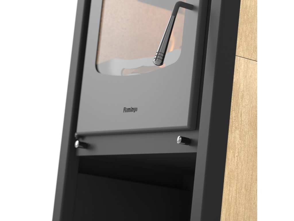Krbová kamna FLAMINGO ® MELAND s jmenovitým výkonem 9 kW a dlažbou ve vzoru imitace javorového dřeva, mají mnoho nadstandardních doplňků. Inovativní prvky směřují především ke zlepšení obsluhy krbových kamen. Díky své vysoké kvalitě a skvělé ceně jsou velice žádaným artiklem teplovzdušných kamen na českém i evropském trhu. Kamna spojují tradiční obloukový tvar a nadčasový design, který zapadne do každého interiéru a splňují nároky i těch nejnáročnějších zákazníků. Proto najdou své uplatnění v novostavbách i stávající zástavbě.
