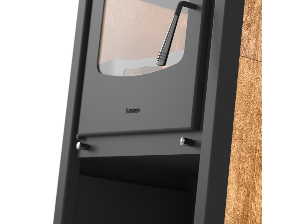 Krbová kamna FLAMINGO ® VEGA s jmenovitým výkonem 9 kW a dlažbou ve vzoru imitace ořechového dřeva, mají mnoho nadstandardních doplňků. Inovativní prvky směřují především ke zlepšení obsluhy krbových kamen. Díky své vysoké kvalitě a skvělé ceně jsou velice žádaným artiklem teplovzdušných kamen na českém i evropském trhu. Kamna spojují tradiční obloukový tvar a nadčasový design, který zapadne do každého interiéru a splňují nároky i těch nejnáročnějších zákazníků. Proto najdou své uplatnění v novostavbách i stávající zástavbě.