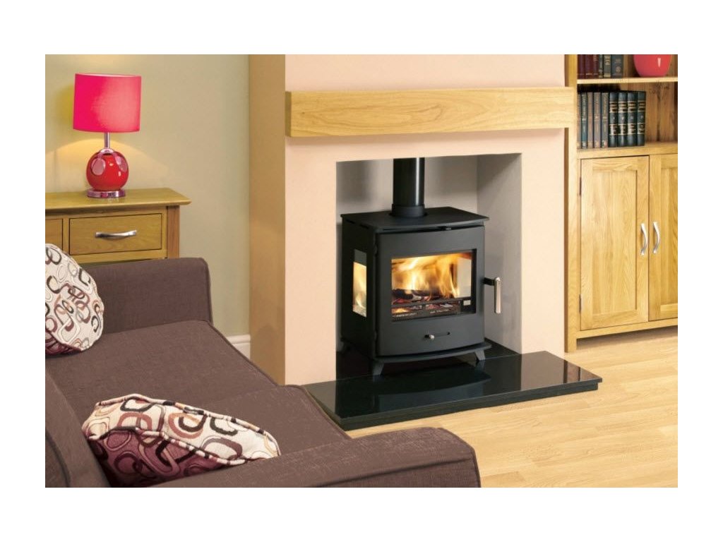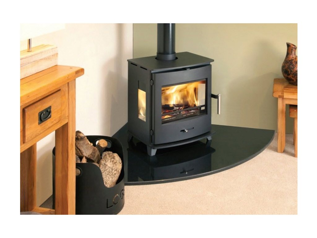Kvalitní krbová kamna HEDE 4 Panorama v černé barvě se zaoblenou čelní stranou a bočním prosklením. Sklo je opatřeno nepřilnavou vnitřní vrstvou, která zajišťuje jeho čistotu i při delším provozu. Do kamen se doporučuje používat dřevěná polena, která lze díky široké spalovací komoře vkládat až do délky 38 cm. Topeniště je navrženo tak, aby palivo hořelo efektivně a uvolňovalo maximum tepla do prostoru. Dvířka kamen sahají přes celou šířku, což umožňuje nádherný pohled na hořící plameny a vytváří dokonalý efekt krbu. Zároveň brání úniku jisker a kouře. Nový systém otevírání dvířek s ocelovou kličkou, opatřenou perforací zadní části, zajišťuje ochlazení a bezpečné otevření holou rukou.