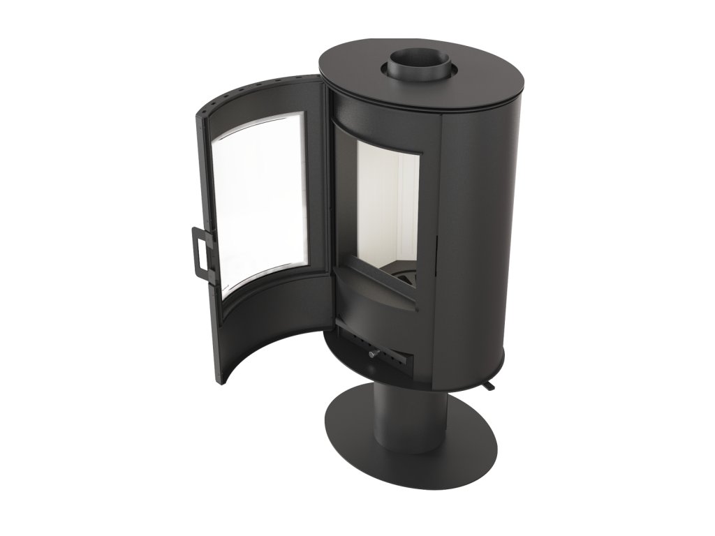 Krbová kamna KRATKI KOZA AB Glass s ocelovou horní deskou a nohou, černá