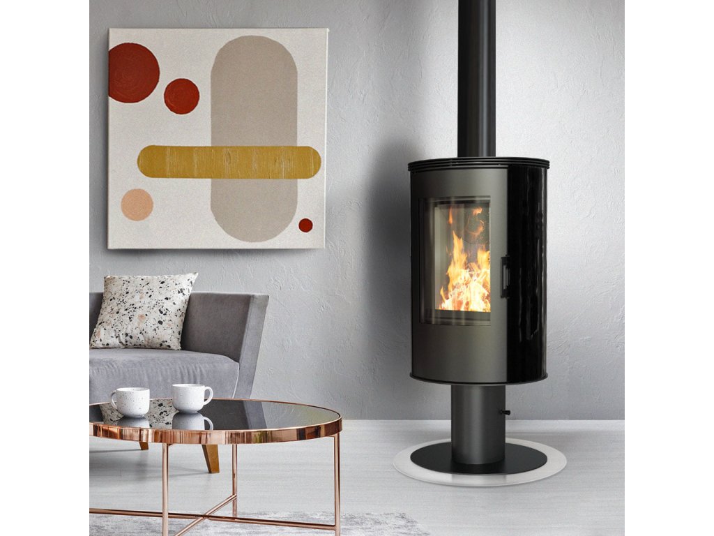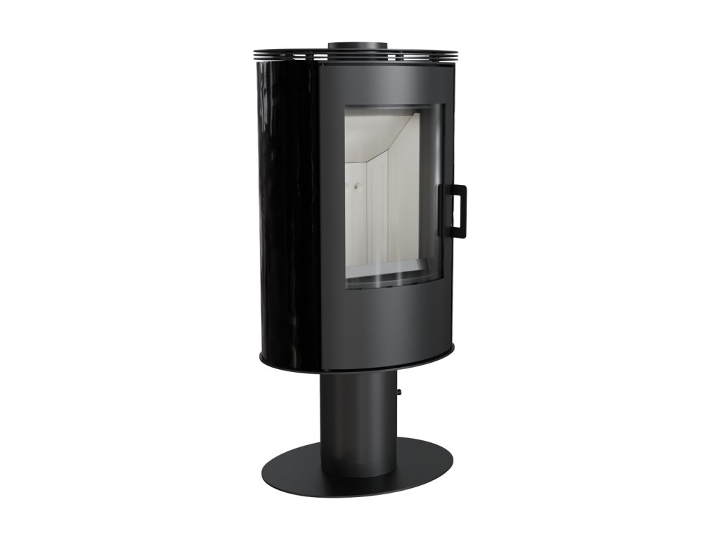 Krbová kamna KRATKI KOZA AB s ocelovou horní deskou a otočnou nohou, černá kachle