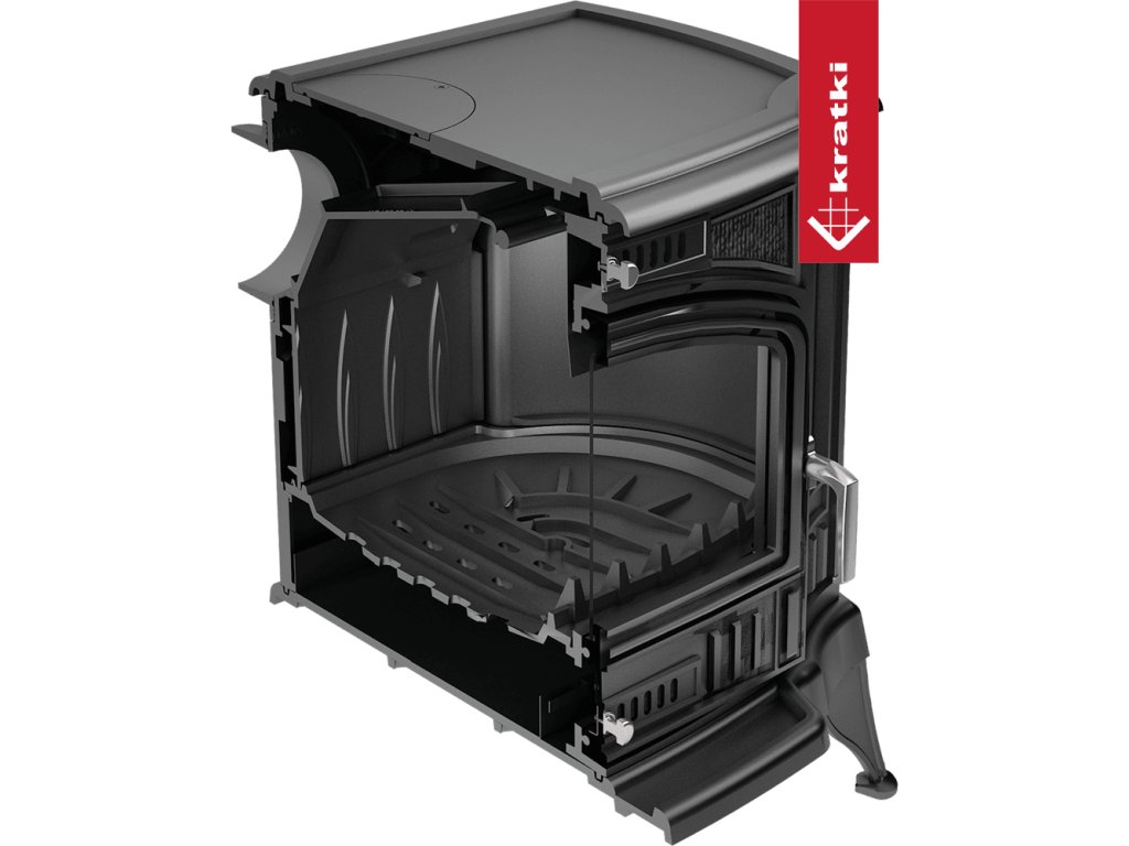 Litinová krbová kamna od výrobce KRATKI se vyznačují vysokou kvalitou, elegantním designem a jednoduchostí používání. Velké prosklení poskytuje úžasný pohled na hořící oheň. Tělo kamen je díky použití kvalitní 8mm litiny odolné vůči vysokým teplotám. Spalování palivových částic je efektivní díky deflektoru, který prodlužuje dráhu spalin. Ruční regulace spalovacího procesu přes popelník. Možnost topení uhlím při dokoupení speciálního košíku na uhlí.