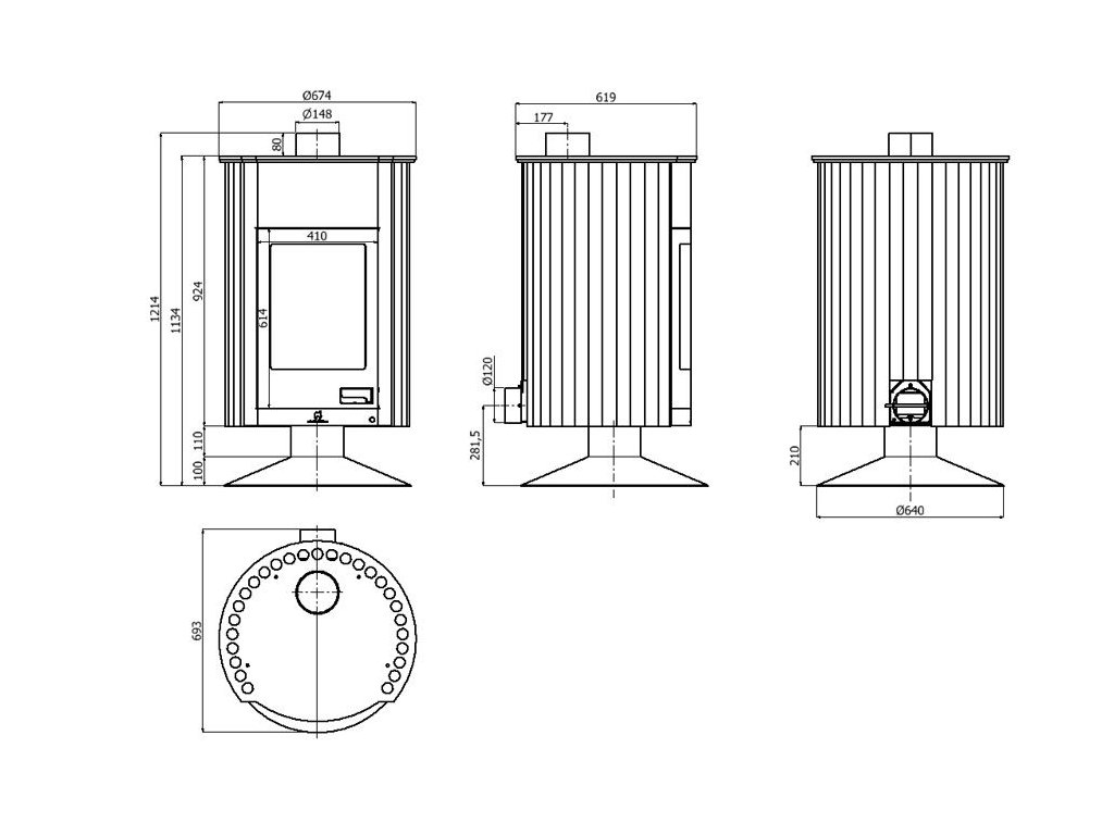 | Palivo: | dřevěné brikety, kusové dřevo |