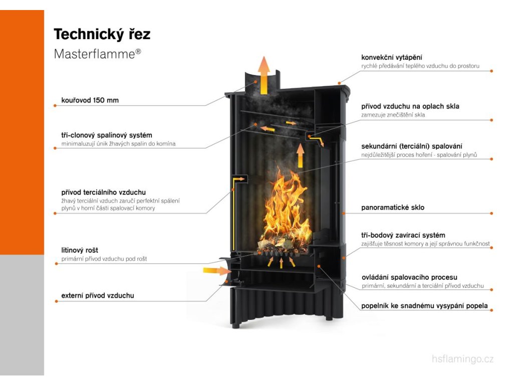 - Inteligentní přísun primárního, sekundárního a terciárního vzduchu do spalovací komory zajišťuje dokonalé spalování