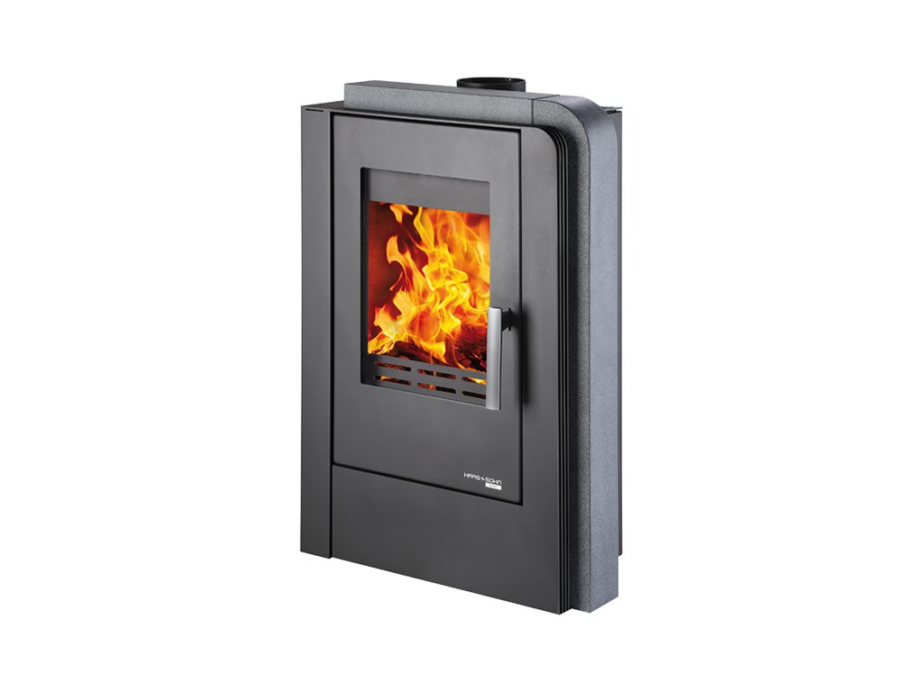 Krbová kamna Haas+Sohn NORDBY se vejdou i do malého prostoru, třeba jako skříňka s televizí. Jejich design je praktický, s odstupem pouhých 5 cm od stěny, a navíc si můžete zvolit mezi zadním a vrchním napojením kouřovodu. Elegantní půlměsíc z přírodního kamene v provedení dodává kamnům stylový vzhled.