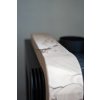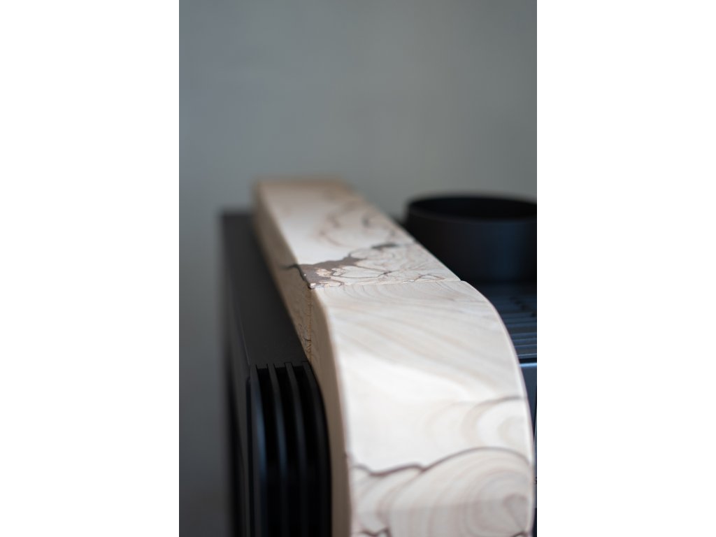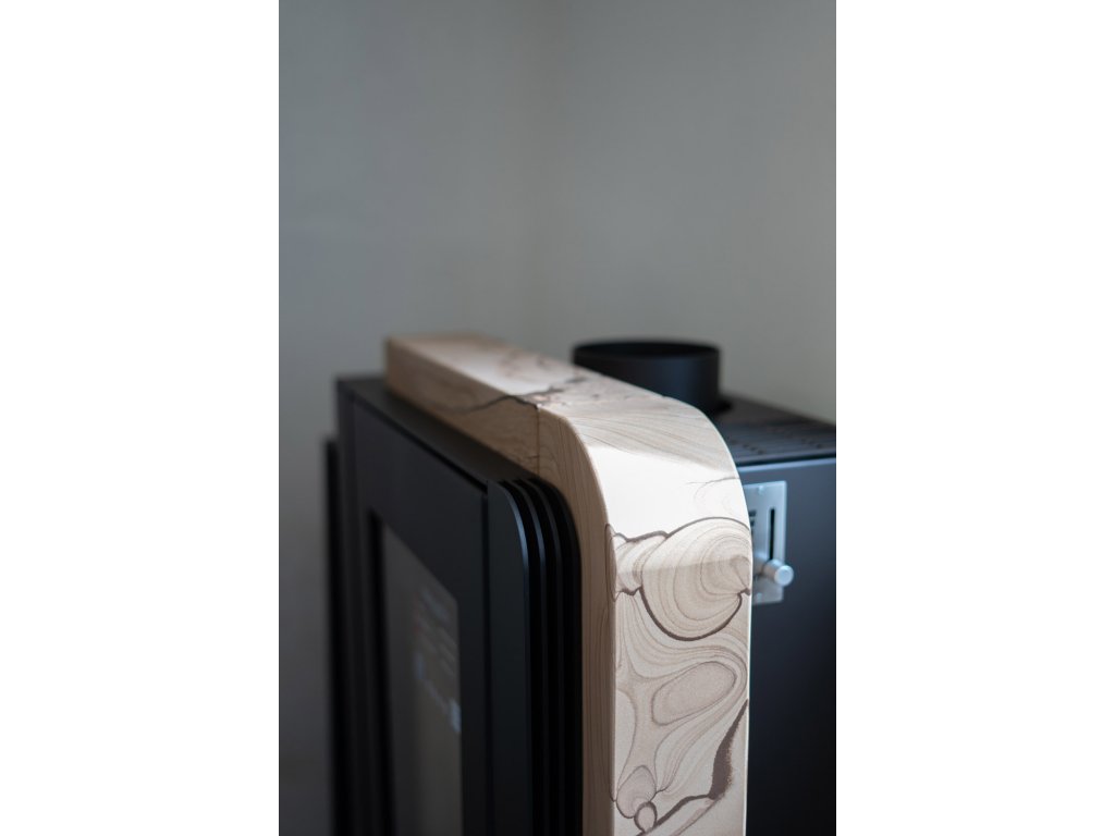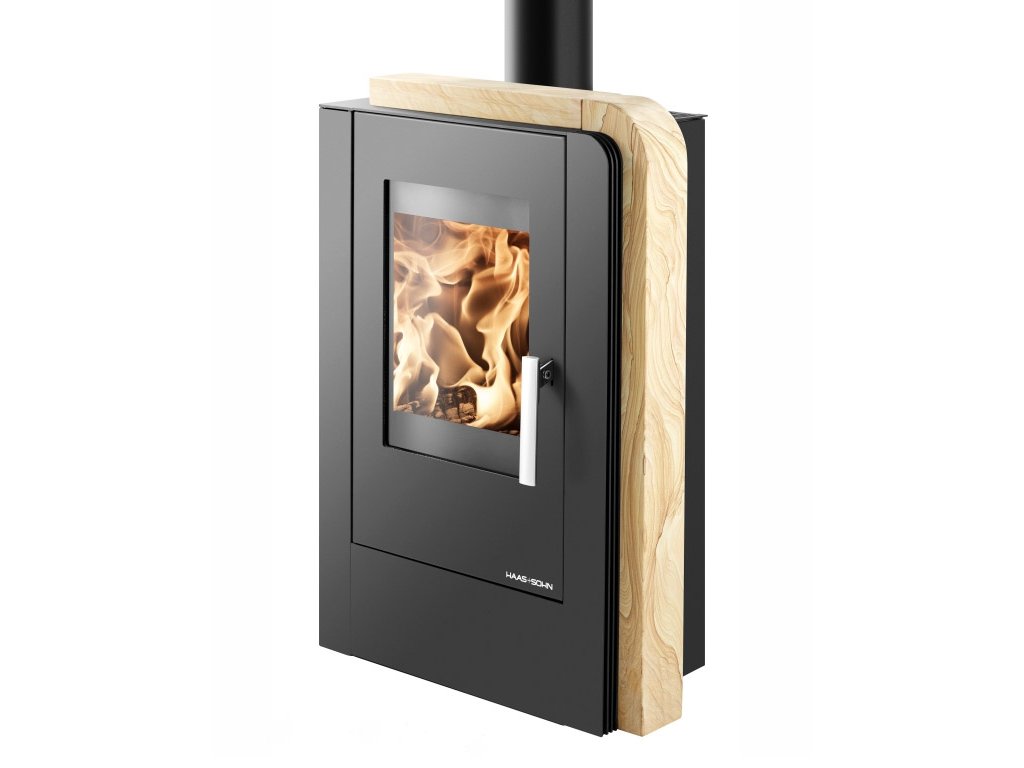 Krbová kamna Haas+Sohn NORDBY v černé barvě zdobí elegantní půlměsíc z přírodního kamene Woodstone Prestige. Neopakovatelná kresba přírodního pískovce dělá z každých kamen jedinečný originál. Kamna jsou vhodná do malých prostor, protože mají hloubku pouhých 37 cm a odstup od zdi stačí 5 cm. Moderní design s elegantními zaoblenými hranami zapadne do každého interiéru.