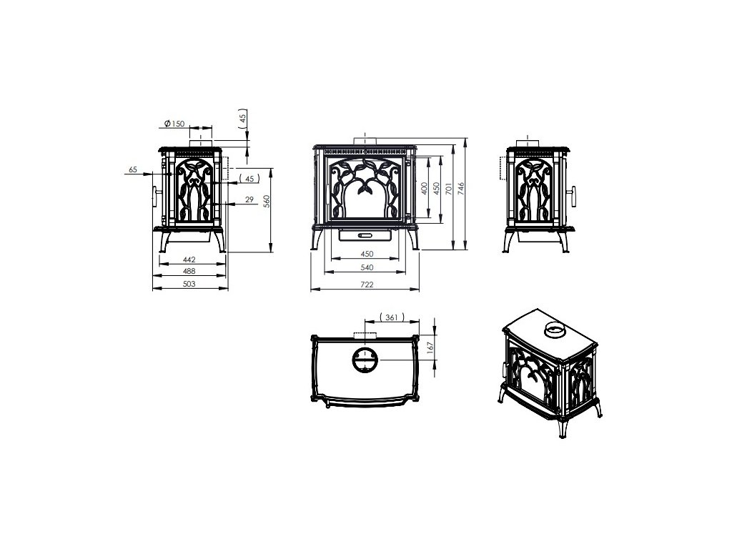 | Palivo: | dřevěné brikety, kusové dřevo |