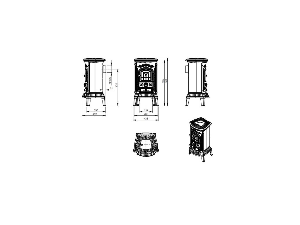| Palivo: | dřevěné brikety, kusové dřevo |