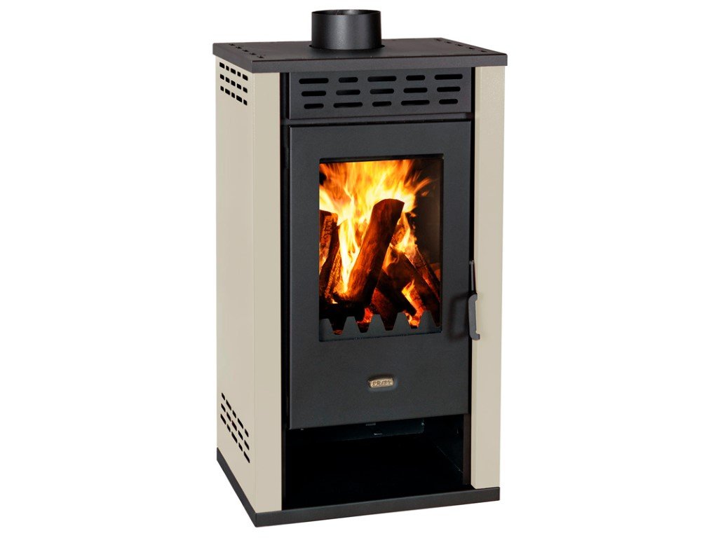 Moderní krbová kamna PRITY s výkonem 8 kW, s bočním plechem v barvě slonové kosti, proskleným topeništěm a praktickým prostorem pro skladování dřeva. Vývod kouřovodu - horní. Jsou schopna vytopit prostor o objemu cca 125 m3. Průměr kouřovodu 150 mm.