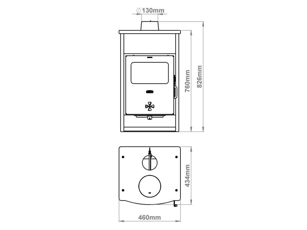 Krbová kamna s litinovou horní deskou v elegantní černé barvě kombinují moderní vzhled s odolnou konstrukcí. Korpus je vyroben z ocelového plechu o síle 2–3 mm, čo zaručuje pevnost a dlouhou životnost. Spalovací komora je obložena akumulačními šamotovými cihlami pro efektivní hoření a uchování tepla. Dvířka jsou osazena keramickým sklem odolným až do 850 °C a těsněním ze skelných vláken, které zajišťuje bezpečný provoz. Na dně topeniště se nachází litinový rošt pro spolehlivé spalování. Součástí kamen je také praktická komínová klapka pro snadnou regulaci tahu.