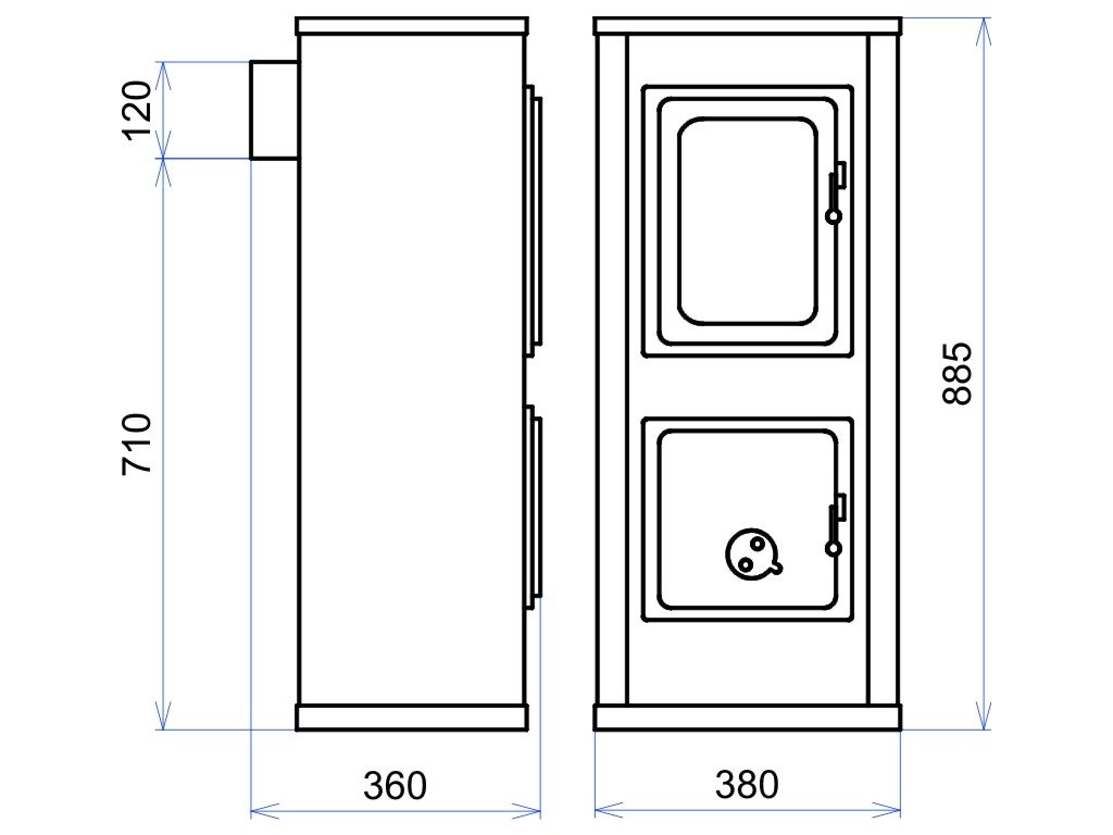 | Palivo: | dřevěné brikety, hnědouhelné brikety, dřevo |
