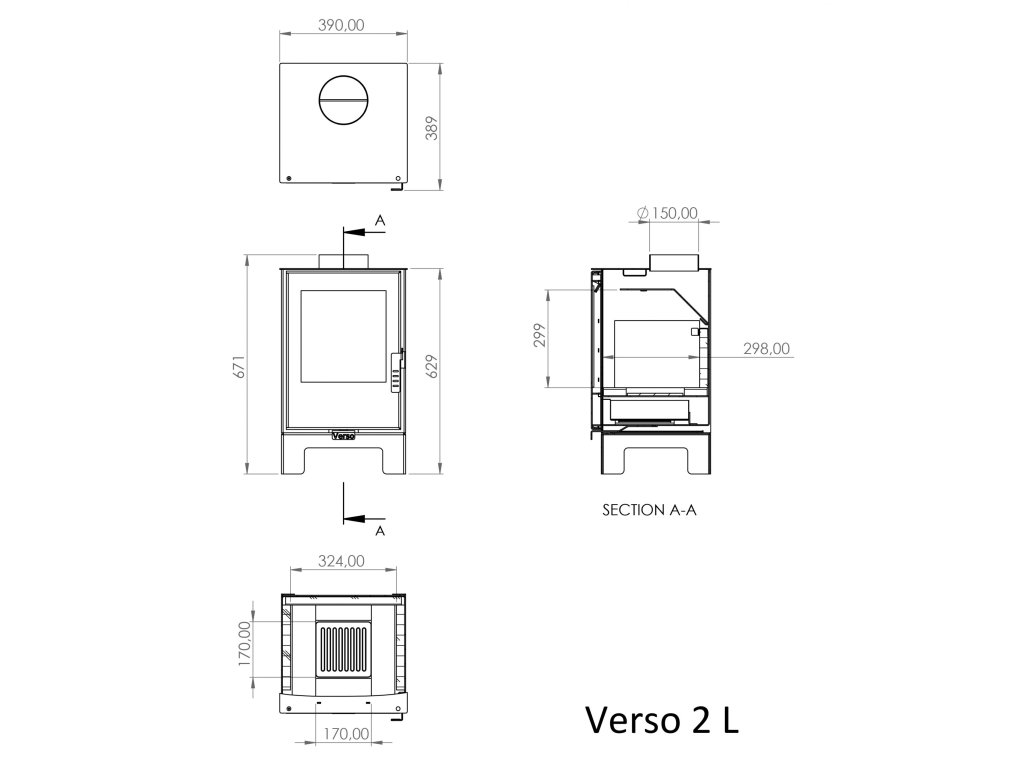 Moderní krbová kamna VERSO 2 L na nožičkách, se sníženým výkonem, vhodná pro nízkoenergetické domy, jsou zaručenou volbou pro všechny, kteří očekávají vysoký výkon, kvalitní provedení a příznivé ceny. Díky svému úzkému provedení jsou vhodná i do menších prostor. Kamna spojují tradiční obdélníkový tvar a moderní design, který zapadne do každého interiéru.