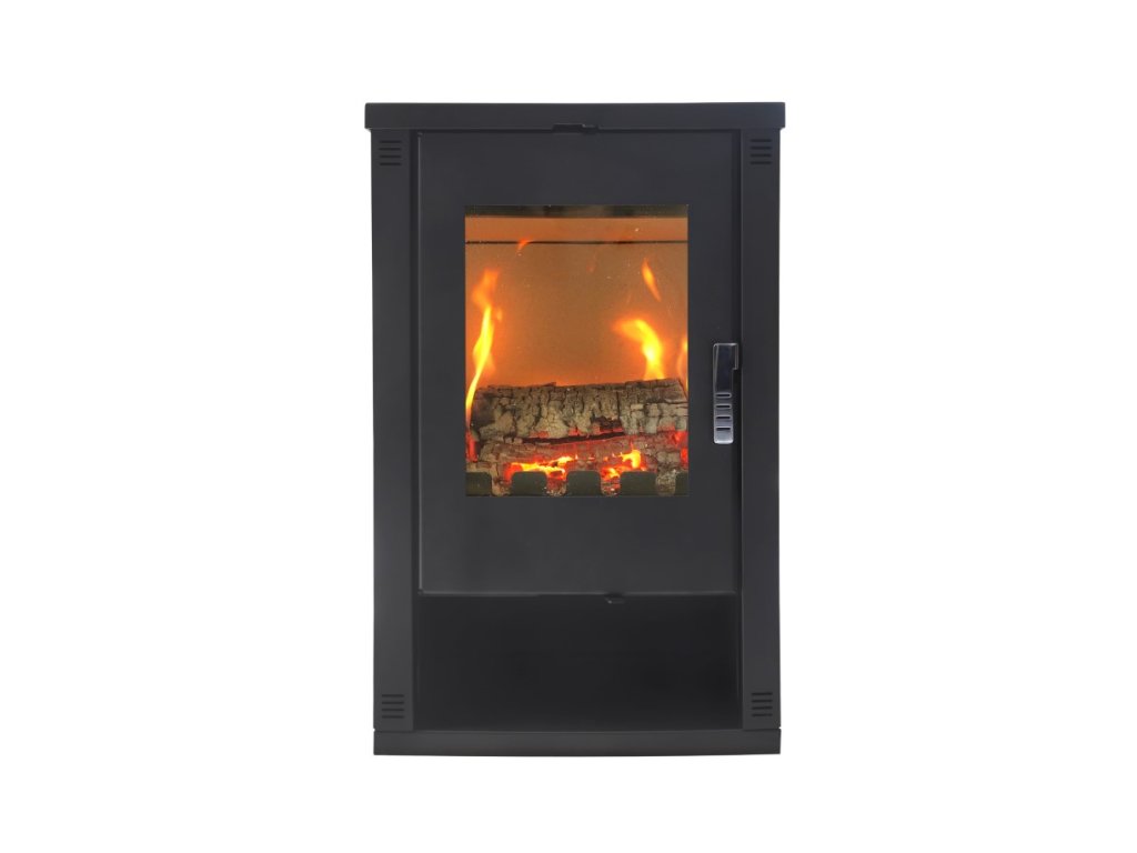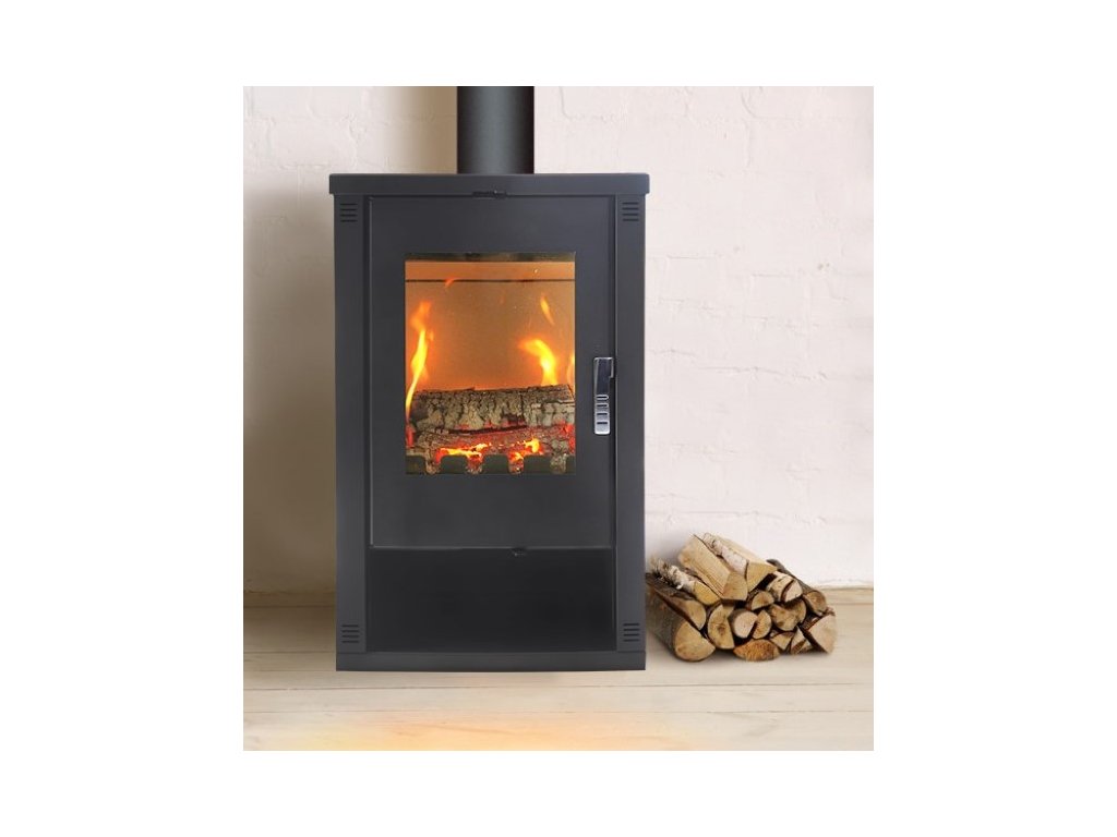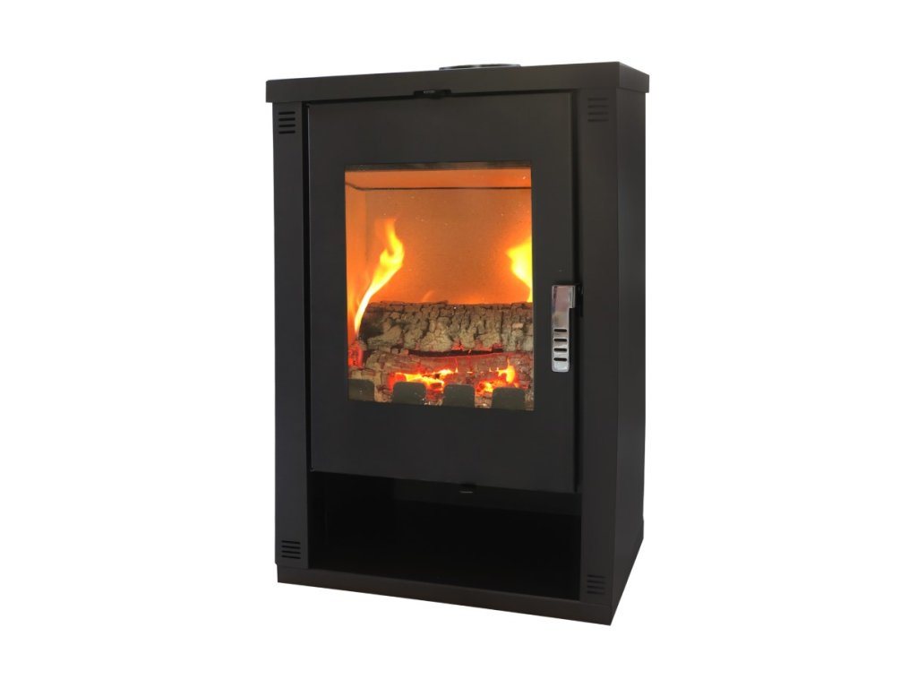 Moderní krbová kamna VERSO Lheia v černé barvě, vhodná pro nízkoenergetické domy jsou zaručenou volbou pro všechny, kteří očekávají vysoký výkon, kvalitní provedení a příznivé ceny. Kamna spojují tradiční obdélníkový tvar a elegantní design, který zapadne do každého interiéru.