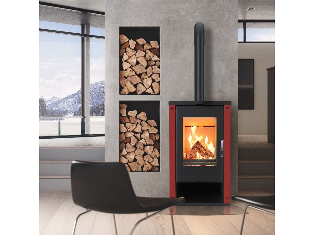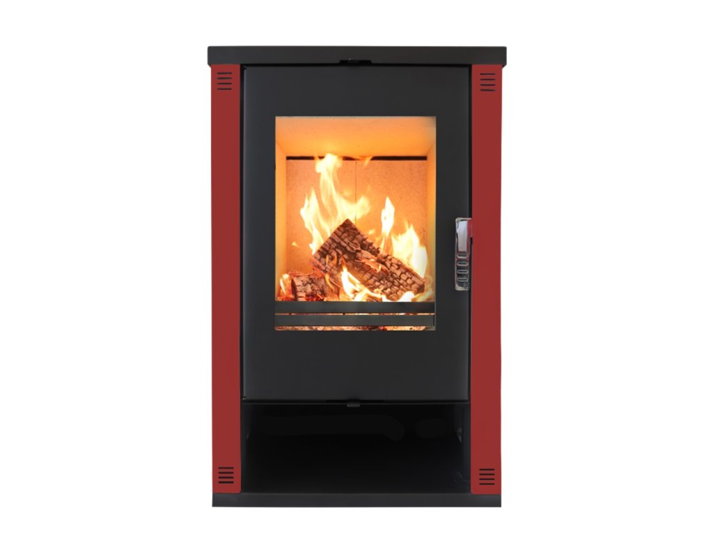 Moderní krbová kamna VERSO Theia v červené barvě, jsou zaručenou volbou pro všechny, kteří očekávají vysoký výkon, kvalitní provedení a příznivé ceny. Kamna spojují tradiční obdélníkový tvar a elegantní design, který zapadne do každého interiéru.