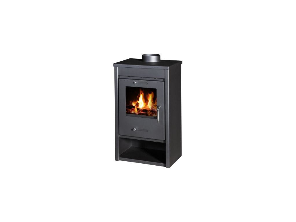 Kamna jsou z kvalitního ocelového plechu o síle 3-4 mm. Jsou lakována speciálním lakem, který odolává vysokým teplotám. Kovové kličky a regulátory jsou poniklované. Tím se snižuje opotřebování povrchu na minimum. Díky prosklenému topeništi si užijete dokonalý zážitek z pohledu na plápolající oheň. Dvířka topeniště jsou opatřena tepelně odolným keramickým sklem, které je odolné teplotám do 850 °C. Těsnění dvířek je ze skelných vláken. Ve spodní části kamen najdete praktický prostor pro skladování dřeva.