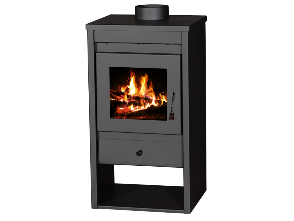 Kamna jsou z kvalitního ocelového plechu o síle 3-4 mm. Jsou lakována speciálním lakem, který odolává vysokým teplotám. Díky prosklenému topeništi si užijete dokonalý zážitek z pohledu na plápolající oheň. Dvířka topeniště jsou opatřena tepelně odolným keramickým sklem, které je odolné teplotám do 850 °C. Uvnitř najdete litinový rošt. Snadná regulace intenzity hoření jedním ovládacím prvkem. Ve spodní části kamen najdete praktický prostor pro dosoušení a skladování dřeva.