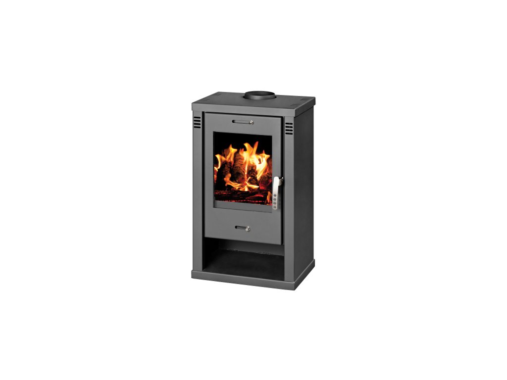 Kamna jsou z kvalitního ocelového plechu o síle 3-4 mm. Jsou lakována speciálním lakem, který odolává vysokým teplotám. Kovové kličky a regulátory jsou poniklované. Tím se snižuje opotřebování povrchu na minimum. Díky prosklenému topeništi si užijete dokonalý zážitek z pohledu na plápolající oheň. Dvířka topeniště jsou opatřena tepelně odolným keramickým sklem, které je odolné teplotám do 850 °C. Těsnění dvířek je ze skelných vláken. Ve spodní části kamen najdete praktický prostor pro skladování dřeva.