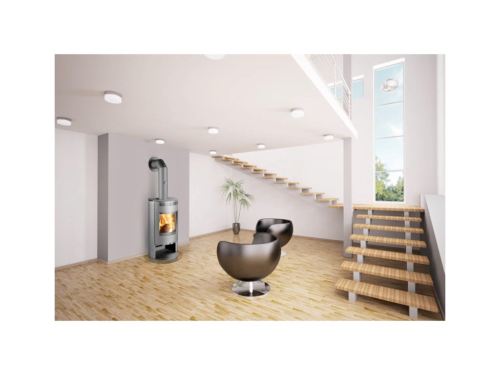 Jmenovitý výkon těchto kamen je 7,5 kW a je regulovatelný v rozmezí 2,5 až 7,5 kW, čímž dokážou vytopit prostor o objemu zhruba 48-124 m3. Kamna vás uchvátí svým luxusním provedením a většími skleněnými dvířky, které zaručují nádherný zážitek z pohledu na plápolající oheň. Tělo kamen tvoří dvouplášťový ocelový plech a ohniště je vyloženo šamotem (vermeculitem). Uvnitř taktéž najdete litinový rošt a za dvířky schovaný popelník. Pod prosklenou částí kamen najdete prostor určený pro skladování dřeva, či dřevěných briket.
